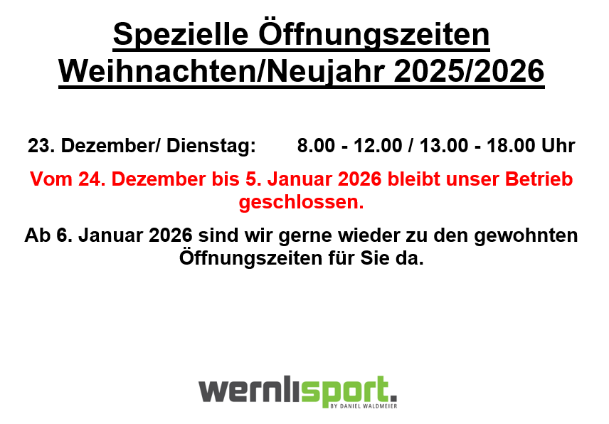 Das Wernli Sport Team wünscht ihnen frohe Festtage und alles Gute im neuen Jahr.