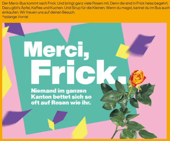 Profitieren Sie dreifach!!! Denn gleichzeitig zeigt die Multimedia Fricktal ihre neusten Produkte und die Migros ist mit dem Merci Bus vor Ort.