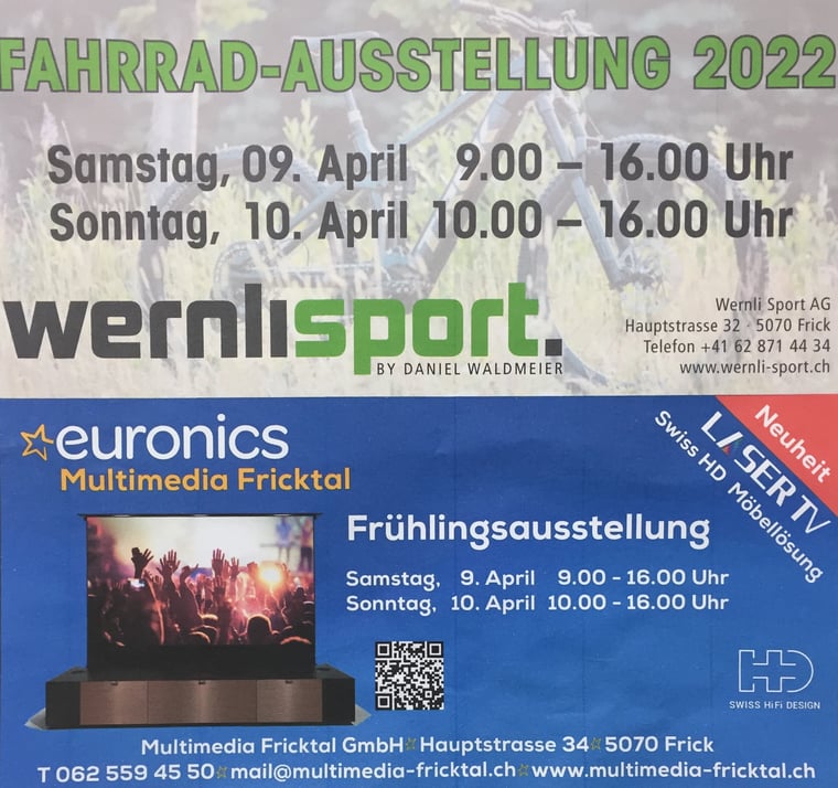 Die Teams von Multimedia Fricktal und Wernli Sport freuen sich auf Ihren Besuch.